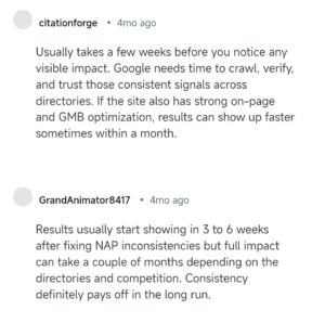 Local SEO practitioners frequently highlight NAP consistency as a foundational ranking factor, though updates across directories may take time to propagate.