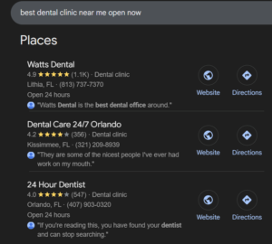 This is very different from informational queries like “how does a root canal work” or even traditional local queries like “dentists in Chicago.” Those are research-phase searches. Real-time intent searches are action-phase.