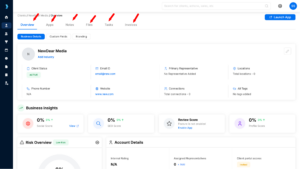 You will then be redirected to the Client Overview page, which can look like this. Here you will be able to easily manage all the apps that your client is connected to, such as listings, reviews, social, etc. You can also access all the notes, files, tasks, and invoices from a single place.